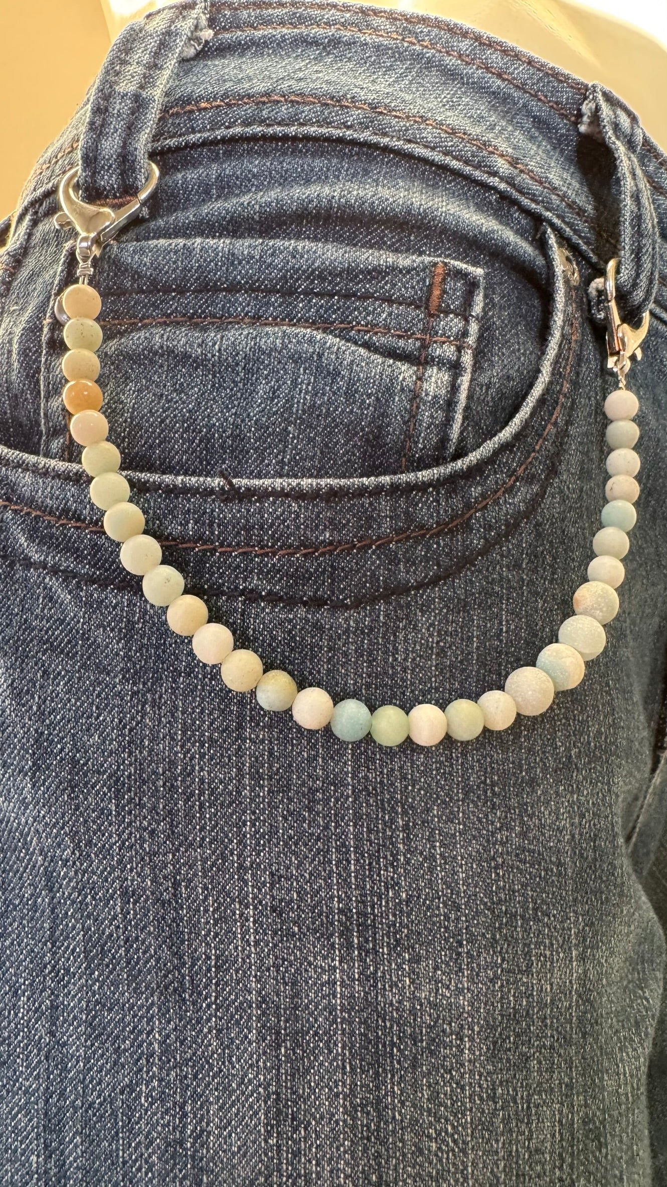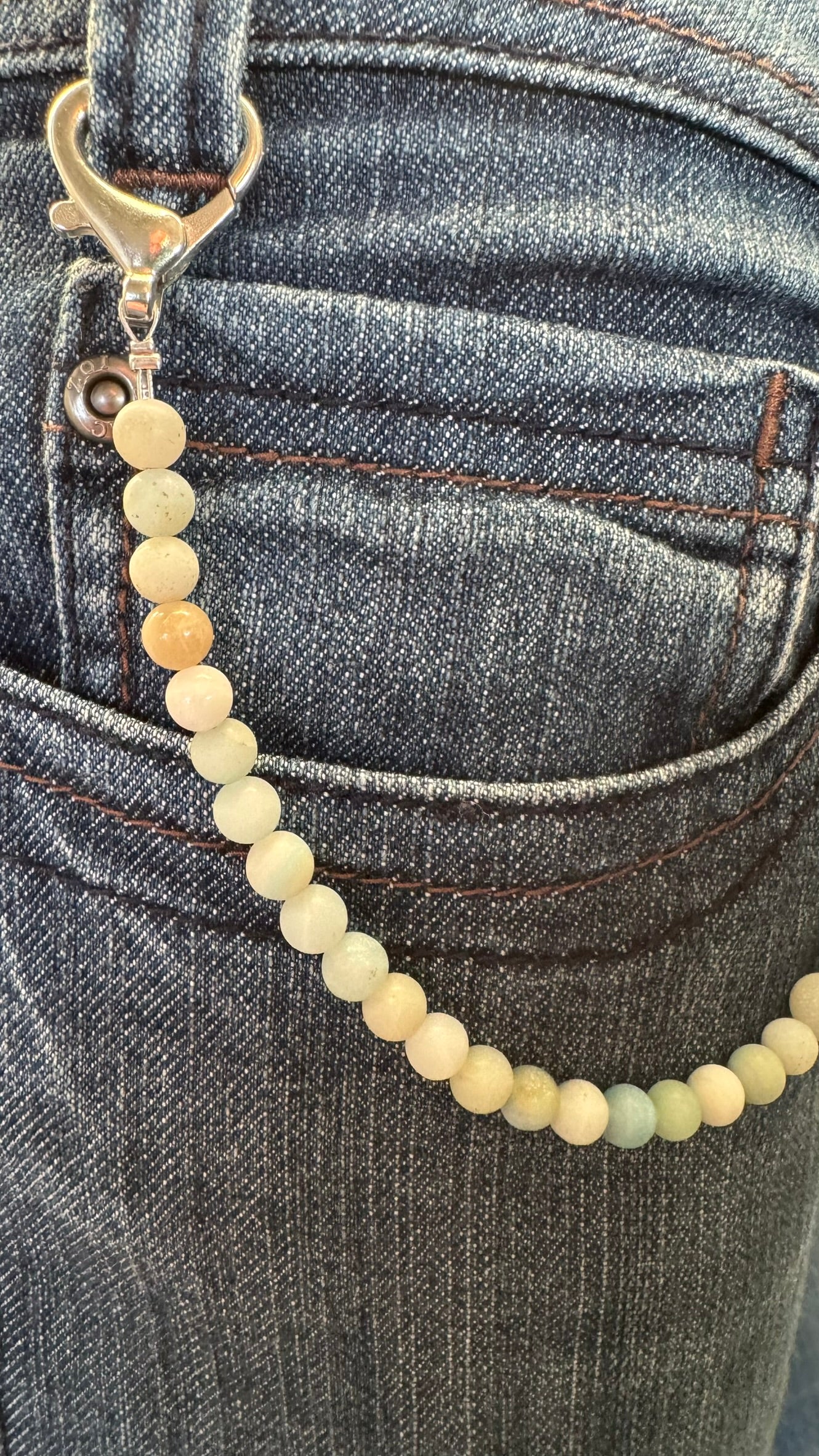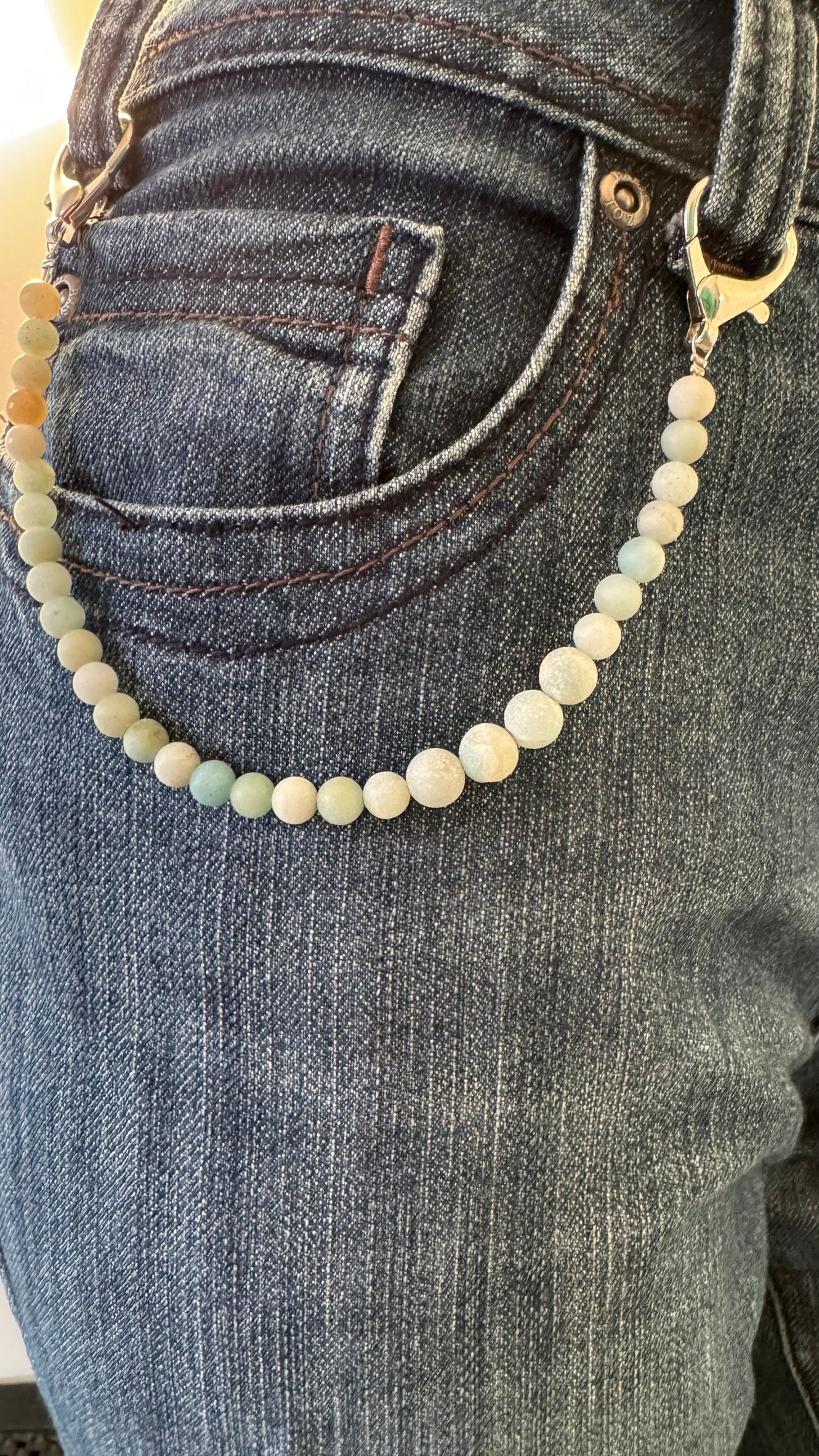 Het product bevat zilverkleurige hartvormige sluitingen, gecombineerd met matte natuursteenlook kraaltjes in zachte groentinten en subtiele kleurnuances. De rustige kleurverloop geeft het sieraad een natuurlijke en tijdloze uitstraling. Dit alles is zorgvuldig geregen op stevig staaldraad, waardoor het sieraad comfortabel draagt en geschikt is voor dagelijks gebruik.